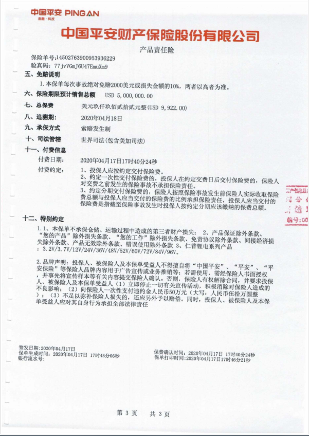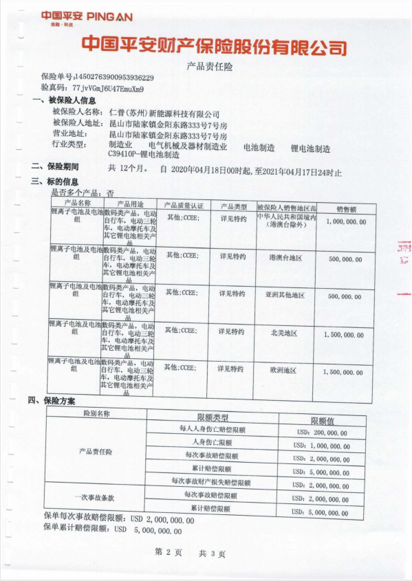 产品责任保险单-公司新闻-仁普(苏州)新能源科技有限公司